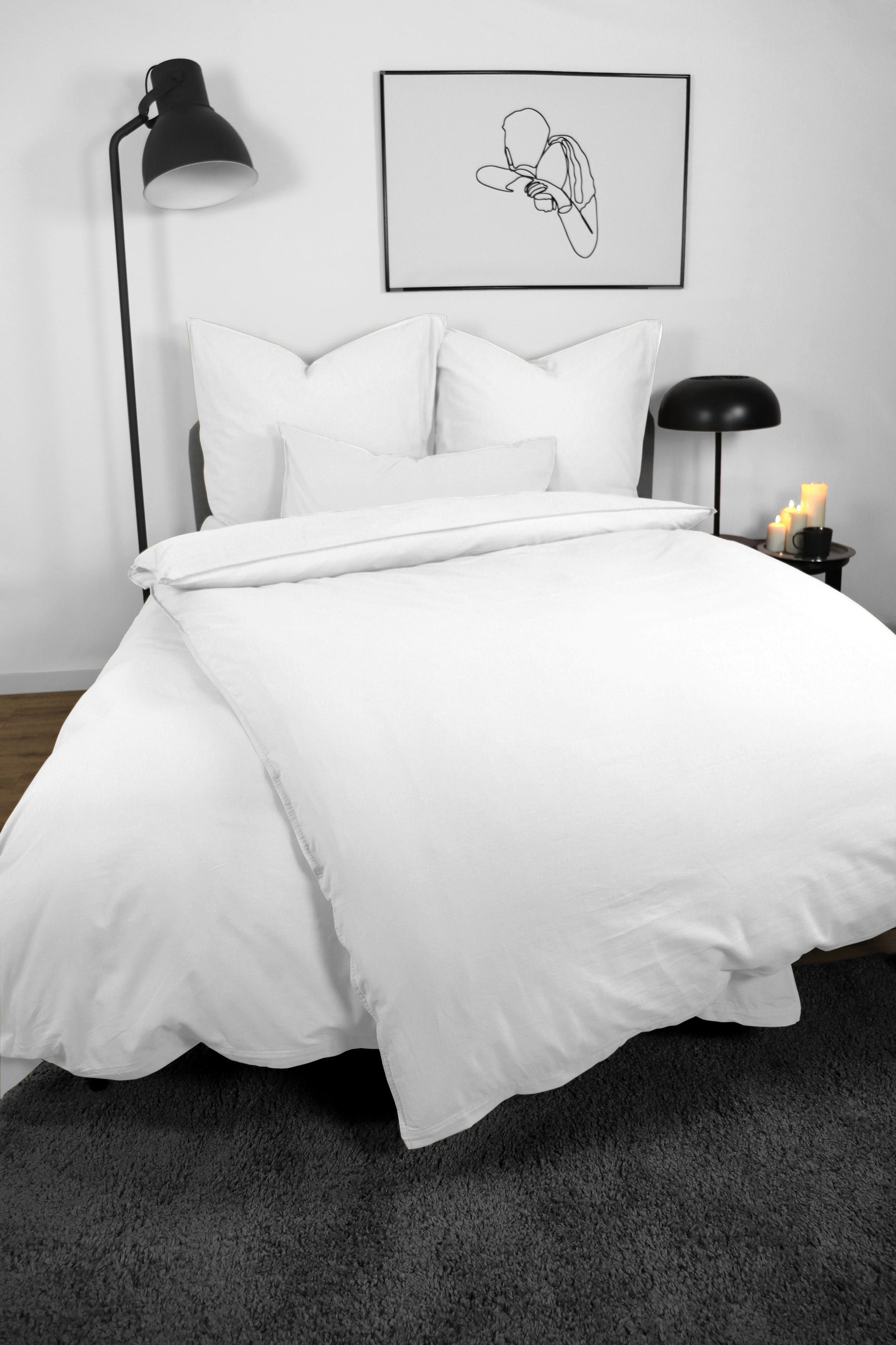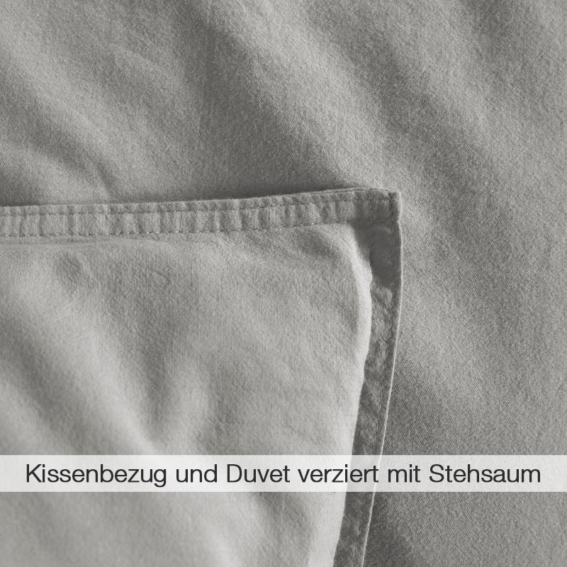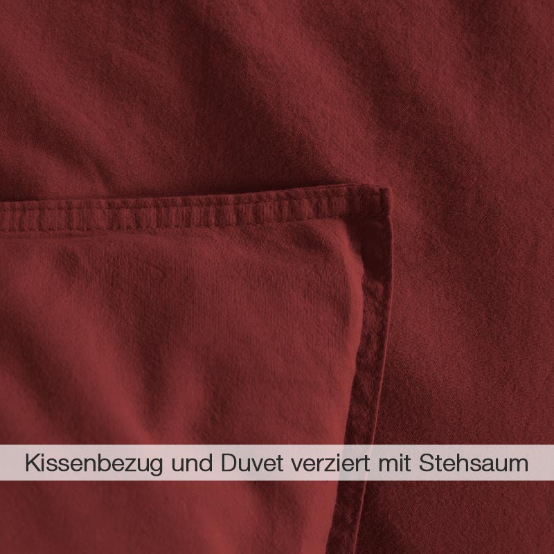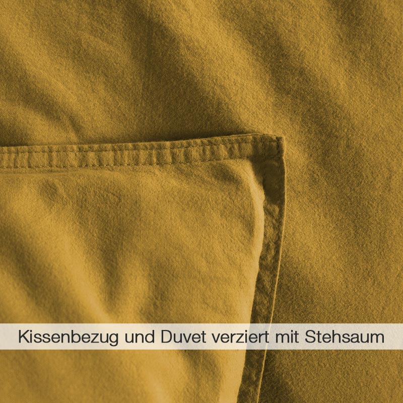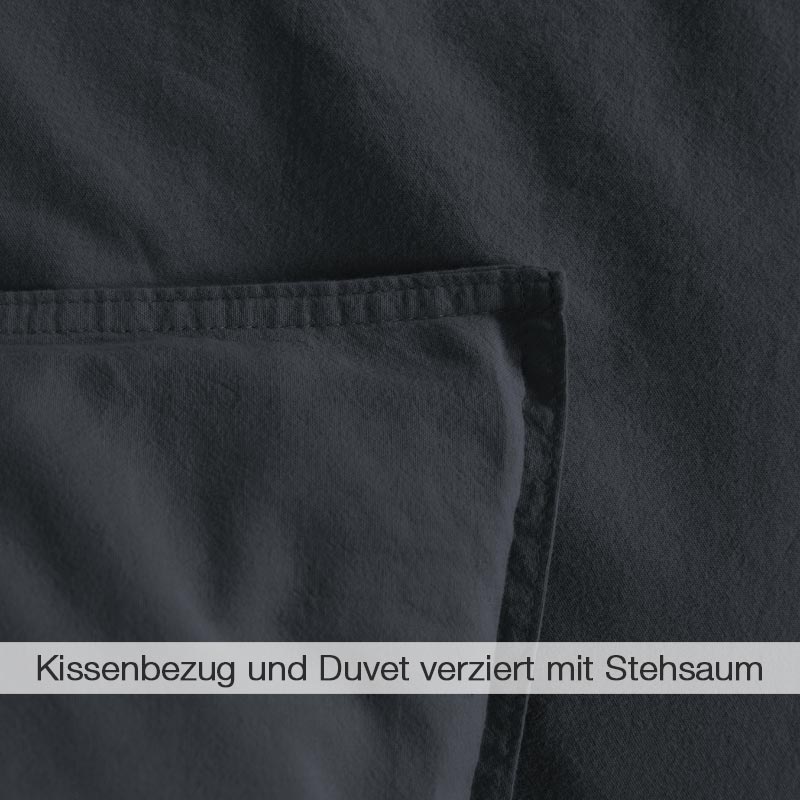 Unser auffällig unauffälliger Bettwäsche-Klassiker, in Stonewashed Optik und mit Stehsaum, ist in vielen verschiedenen Uni-Farben erhältlich. Vom tiefdunklen Meeresblau bis hin zum Sonnenuntergang-Orange ist für jeden Geschmack und Einrichtungsstil ein unifarbendes Design dabei. Sie besticht nicht nur durch edles Design, auch unsere Materialien wurden sorgfältig ausgewählt. Wir können eine wohlige und gemütliche Schlafatmospähre und eine angenehm, seidige Beschaffenheit garantieren.
