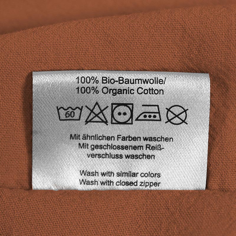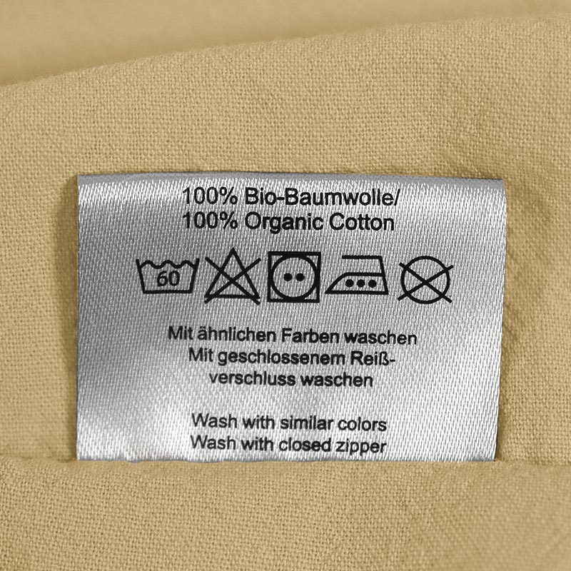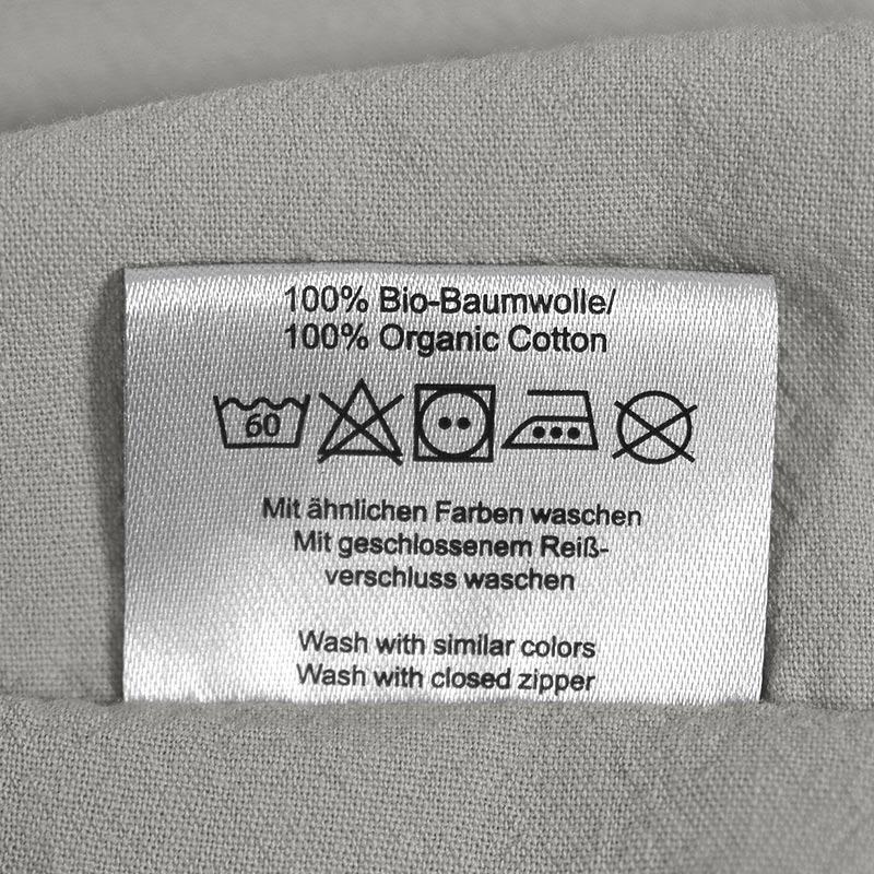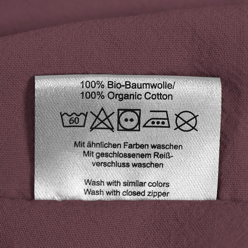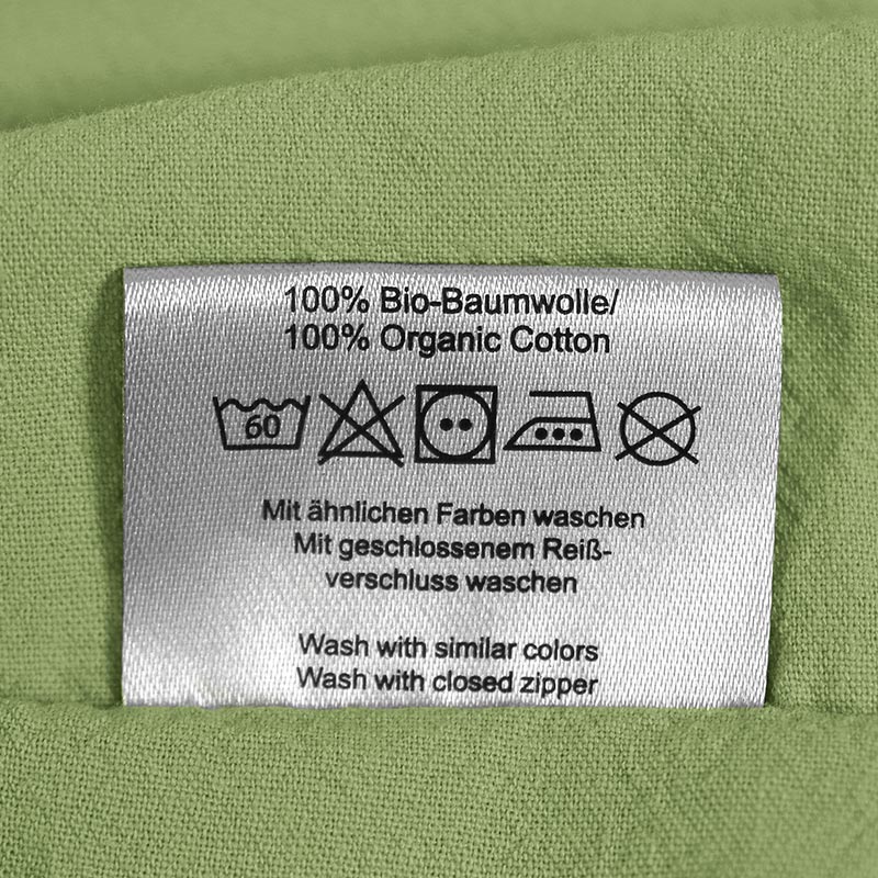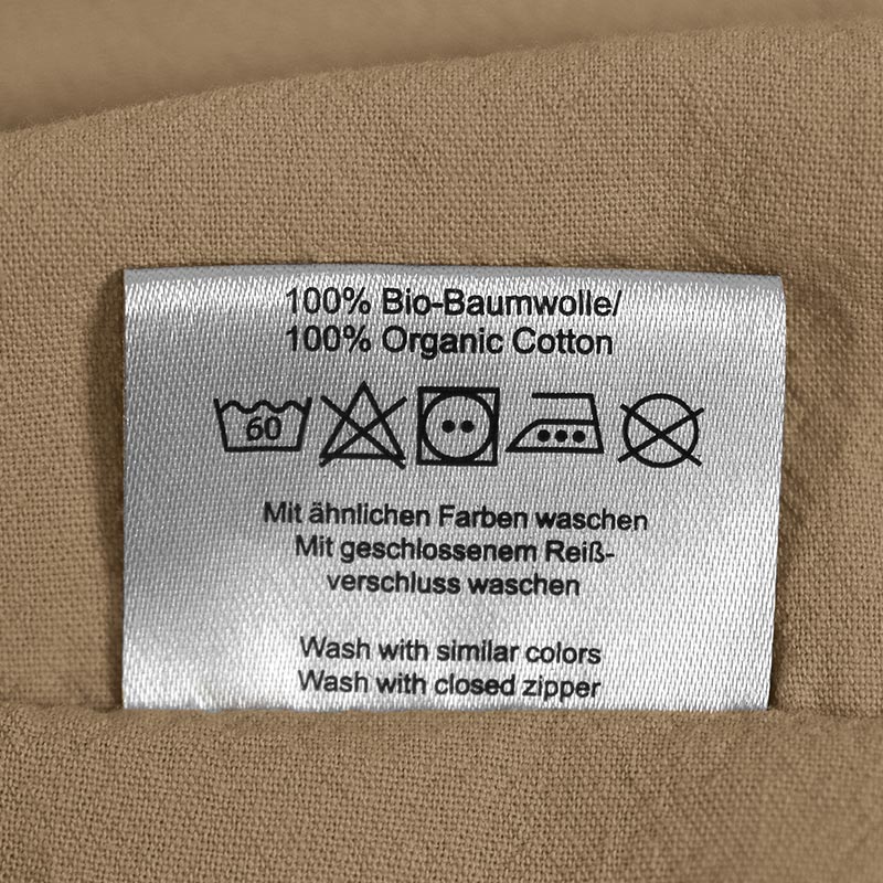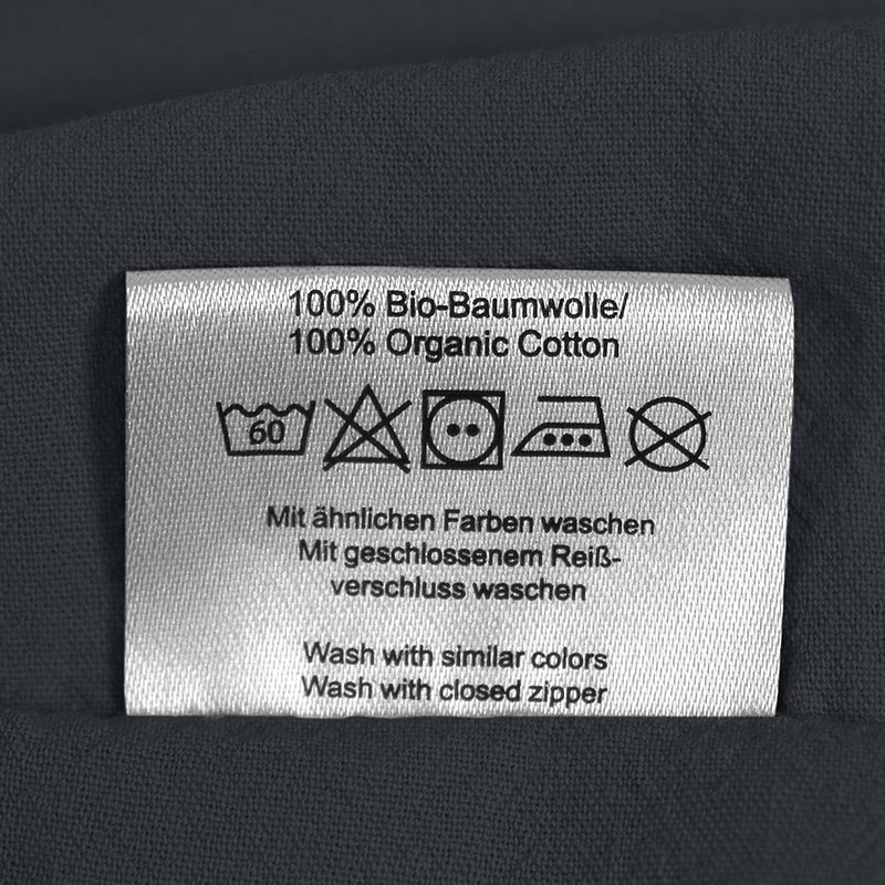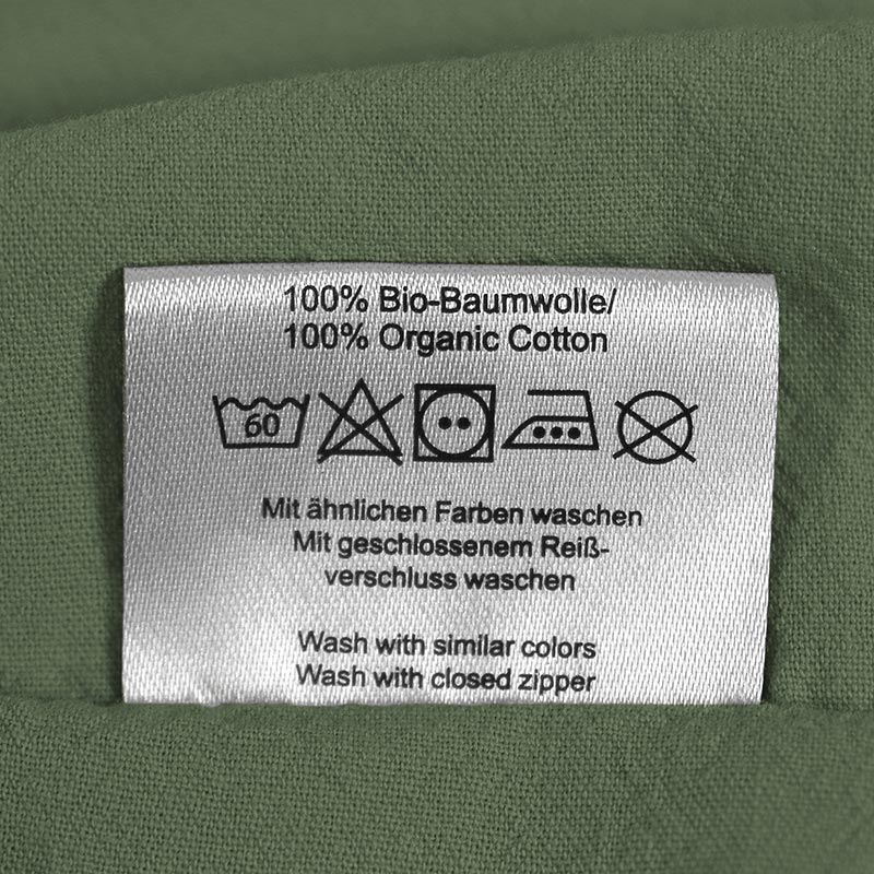 100% Bio-Baumwolle und MADE IN GREEN. Mit hochwertig, verdecktem und farblich passendem Reißverschluss. Selbstverständlich sind unsere Bettwäschen waschmaschinen -und trocknergeeignet (waschbar bis 60 Grad).