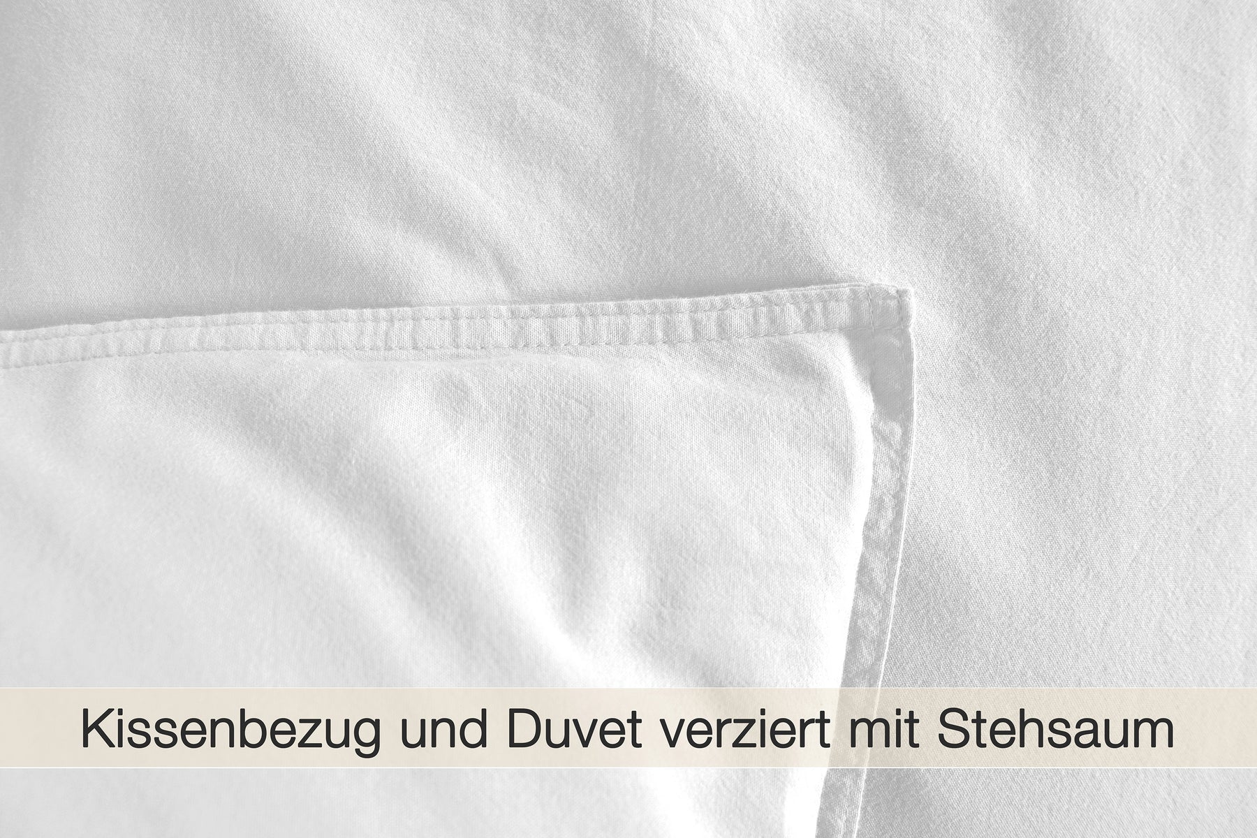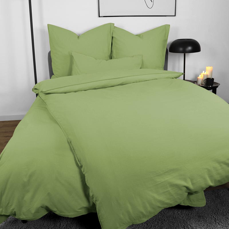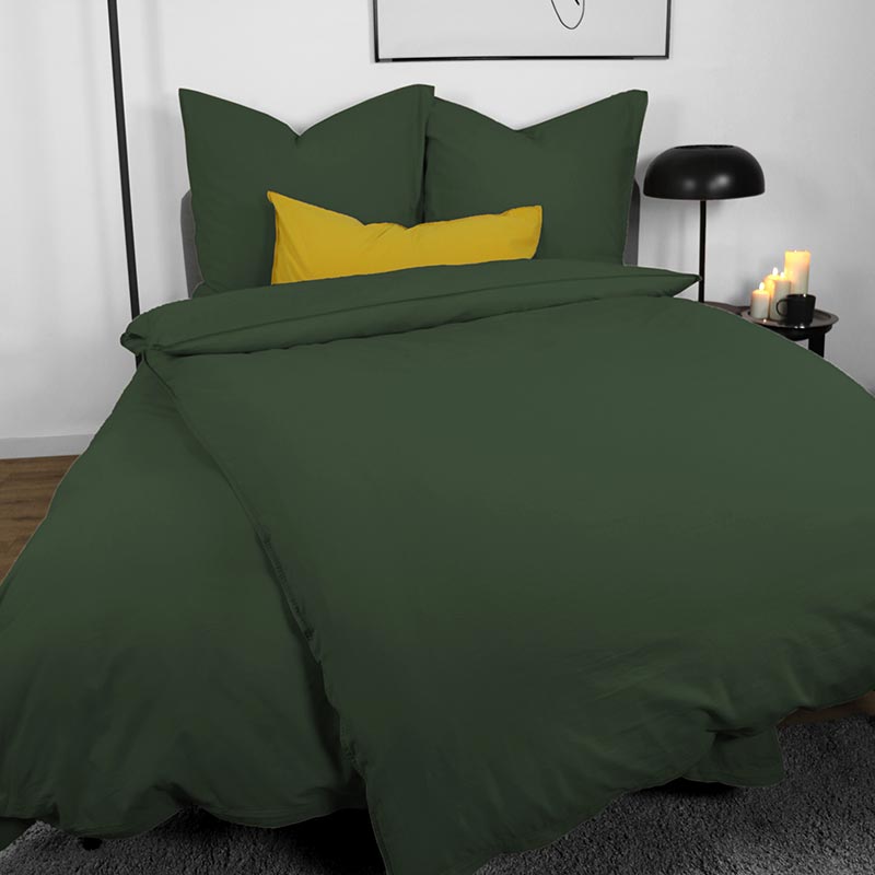 erhältlich in vielen verschiedenen Unifarben und fünf verschiedenen Größen - 135x200cm + 80x80cm, 155x220cm + 80x80cm oder 200x200cm + 2x 80x80cm oder 220x200cm + 2x 80x80cm oder 240x220cm + 2x 80x80cm. Auch farblich Kissenbezüge in 40x80cm sind erhältlich. Die Garnitur ist pflegeleicht, bügelfrei, hautfreundlich, weich, atmungsaktiv, strapazierfähig und für Allergiker geeignet. Geeignet wird jedes Zimmer, ob Kinder-Gäste-Schlafzimmer.