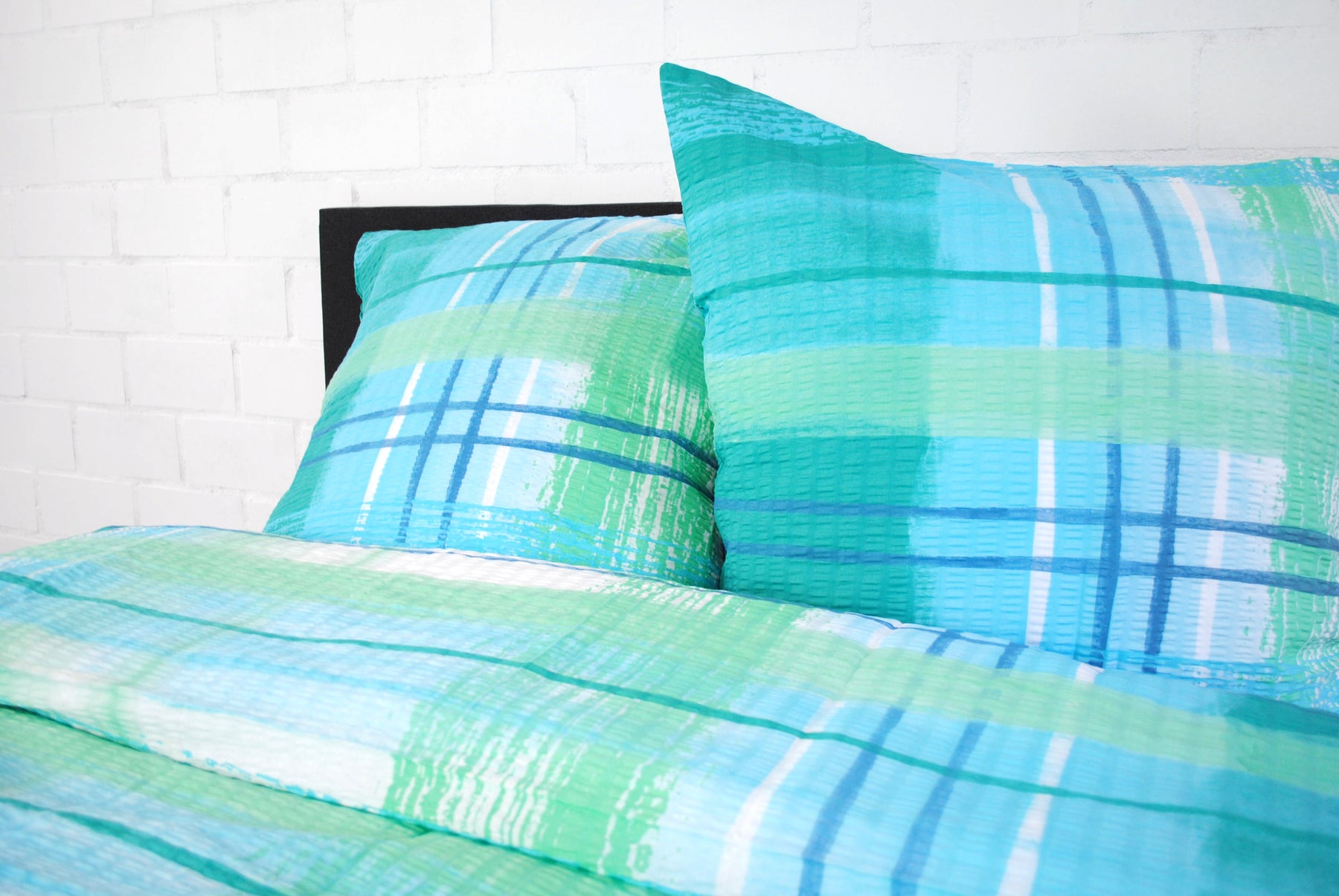 Seersucker-Bettwäsche "Watercolour blue" (135x200cm + 80x80cm)