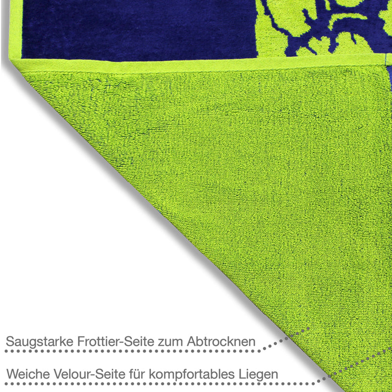 Die vielfältigen farbenfrohen Motive lassen überall Urlaubsstimmung aufkommen und sind trotz ihrer großen Größen von 90x 180cm ideal um sie in einen Koffer oder in eine Strandtasche zu verstauen. Unsere unterschiedlichen Motive eignen sich für jeden und lassen Sie selbst im Schwimmbad das Gefühl von Sonne, Meer und Urlaub fühlen. Finden Sie auch für sich und Ihre liebsten das perfekte Motiv und statten Sie sich für Ihren nächsten Urlaub aus.