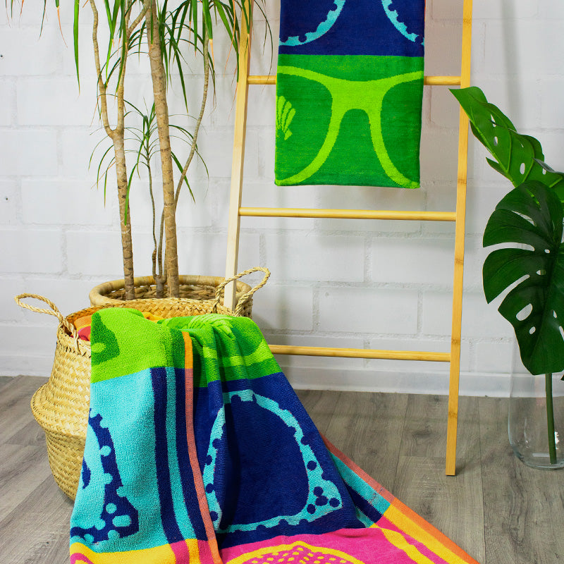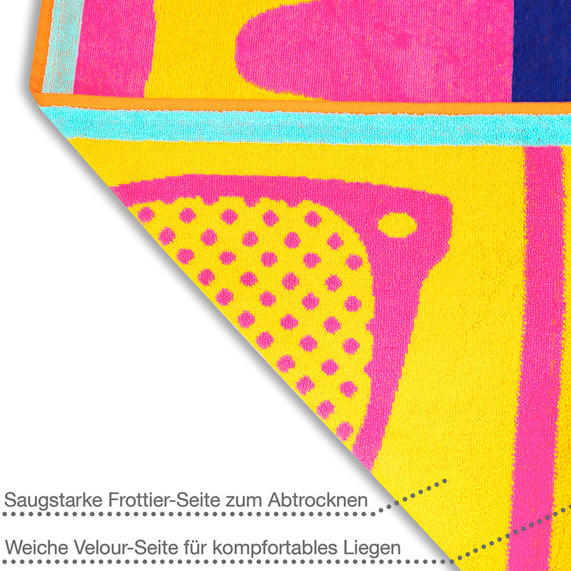 Die vielfältigen farbenfrohen Motive lassen überall Urlaubsstimmung aufkommen und sind trotz ihrer großen Größen von 90x 180cm ideal um sie in einen Koffer oder in eine Strandtasche zu verstauen. Unsere unterschiedlichen Motive eignen sich für jeden und lassen Sie selbst im Schwimmbad das Gefühl von Sonne, Meer und Urlaub fühlen. Finden Sie auch für sich und Ihre liebsten das perfekte Motiv und statten Sie sich für Ihren nächsten Urlaub aus.