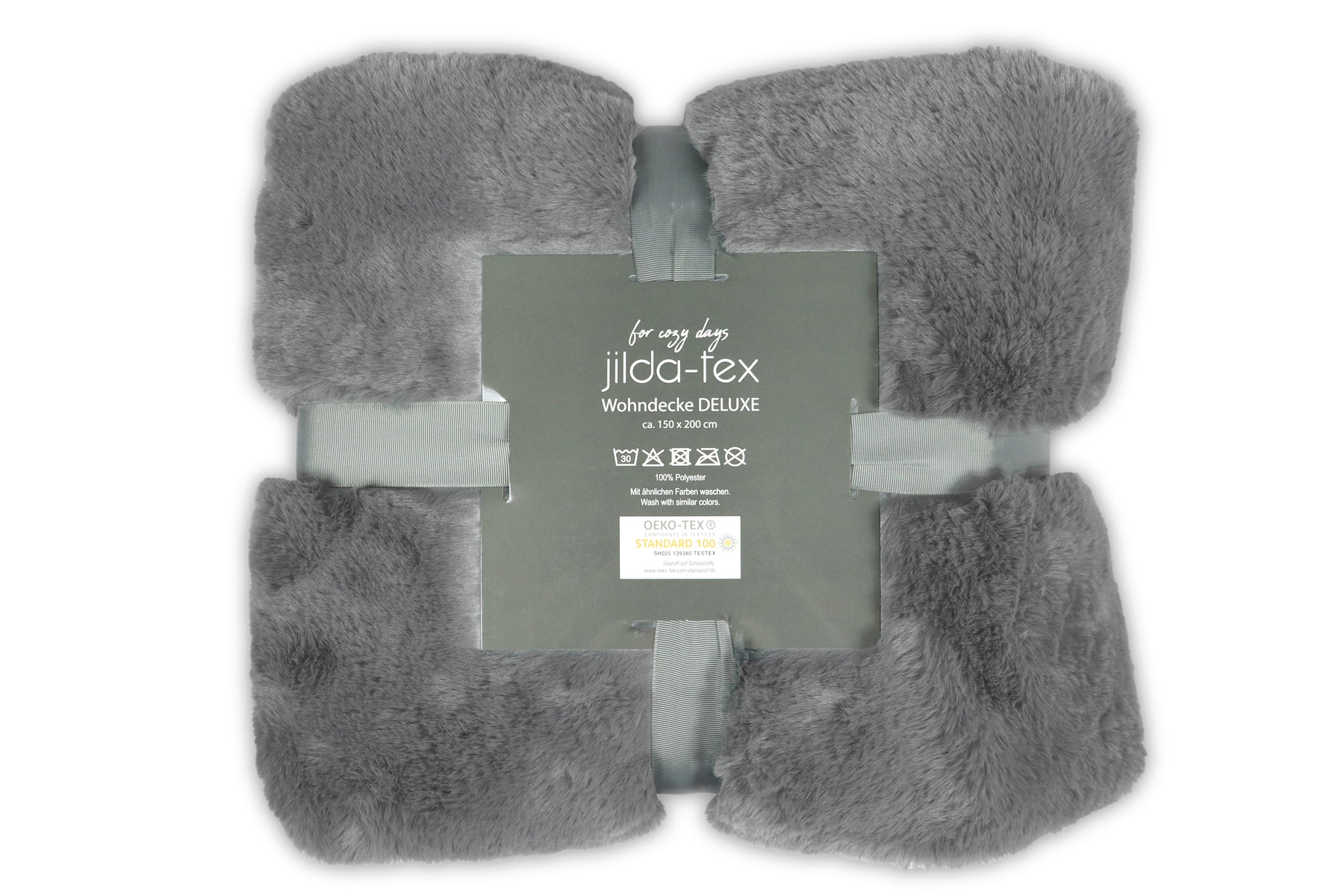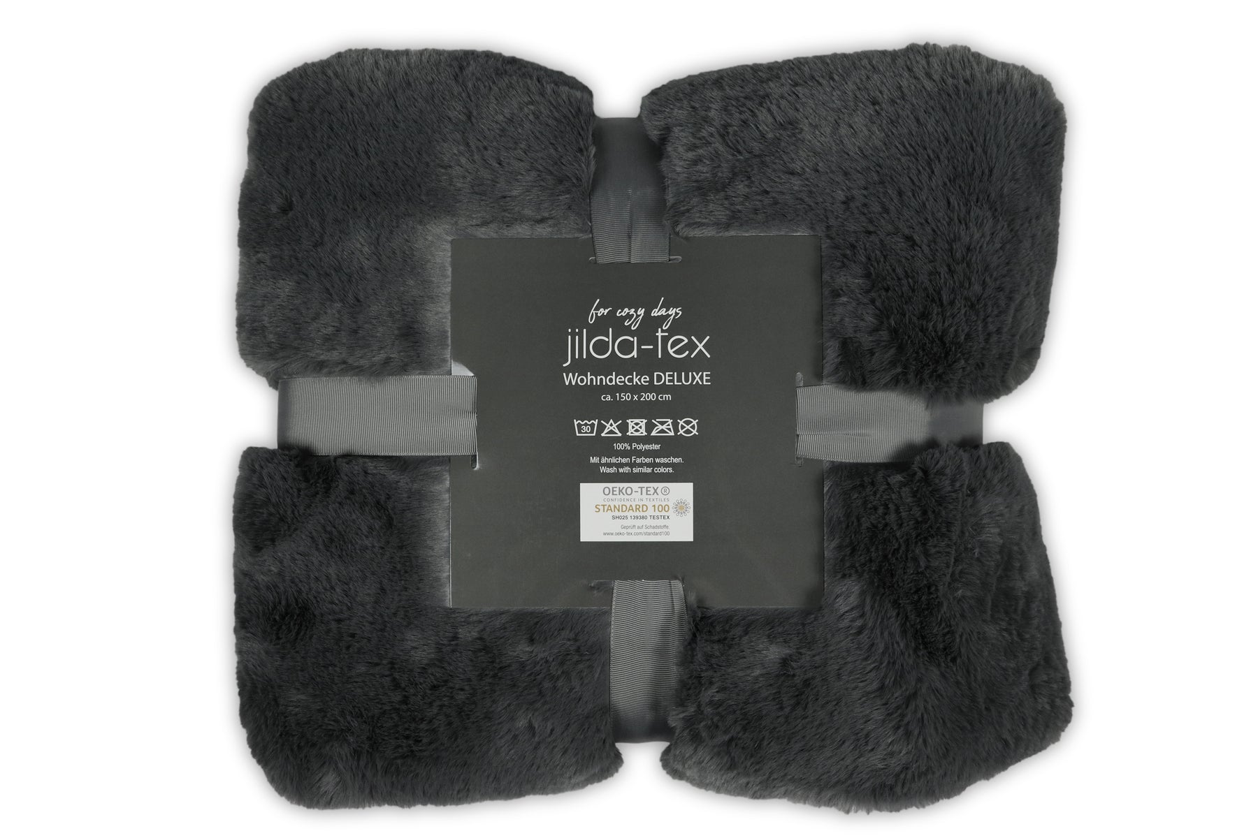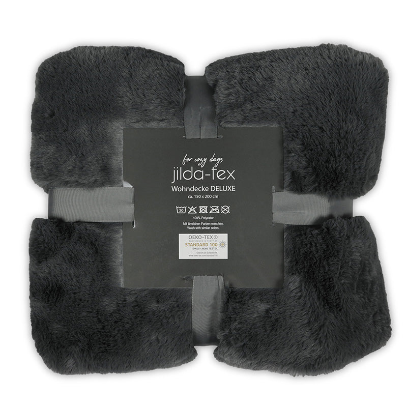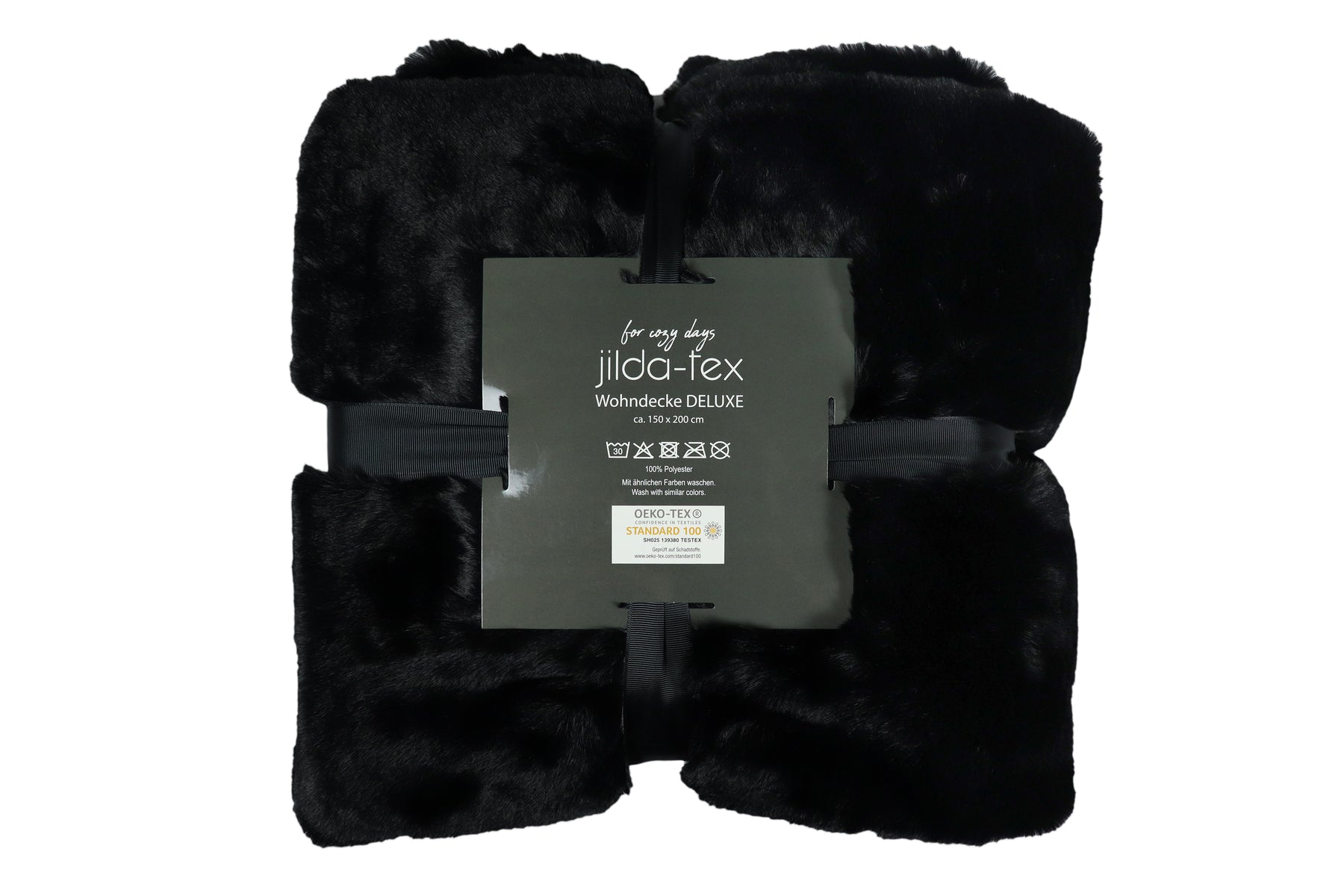 Wohnaccessoire der Luxusklasse- Die Deluxe Wohndecken stechen vor allem durch ihr täuschend echtes Fellimitat hervor. Durch den langen luxuriösen Flor mit lebendem Farbeffekt kommen unsere schimmernden Farben von Creme bis tiefschwarz besonders schön und kräftig zur Geltung. Durch den Glanz des Pelzimitats strahlen die Wohndecken besondere Exklusivität aus und unterscheiden sich optisch als auch haptisch kaum vom Echtfell. Darüber hinaus sind die Wohndecken sehr gemütlich und wärmend. Der Stoff hinterlässt ein angenehmes und wohliges Gefühl auf der Haut.